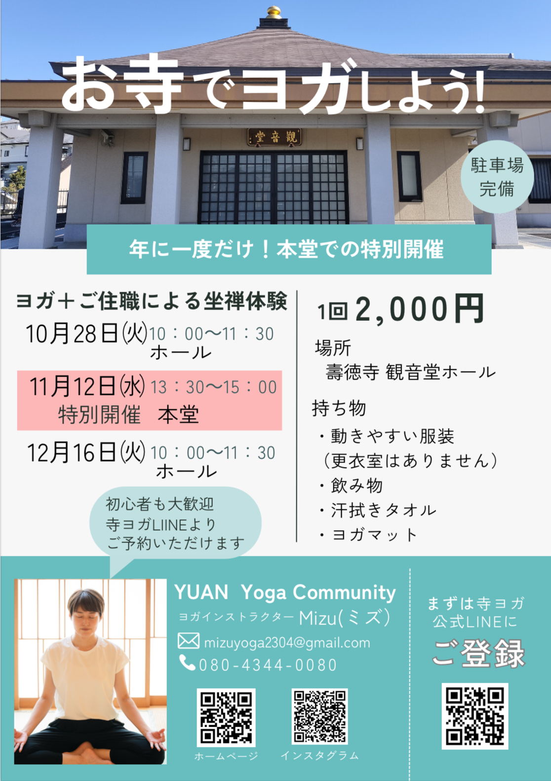 お寺でヨガ+坐禅体験 10月~12月【ヨガMizu YUAN】